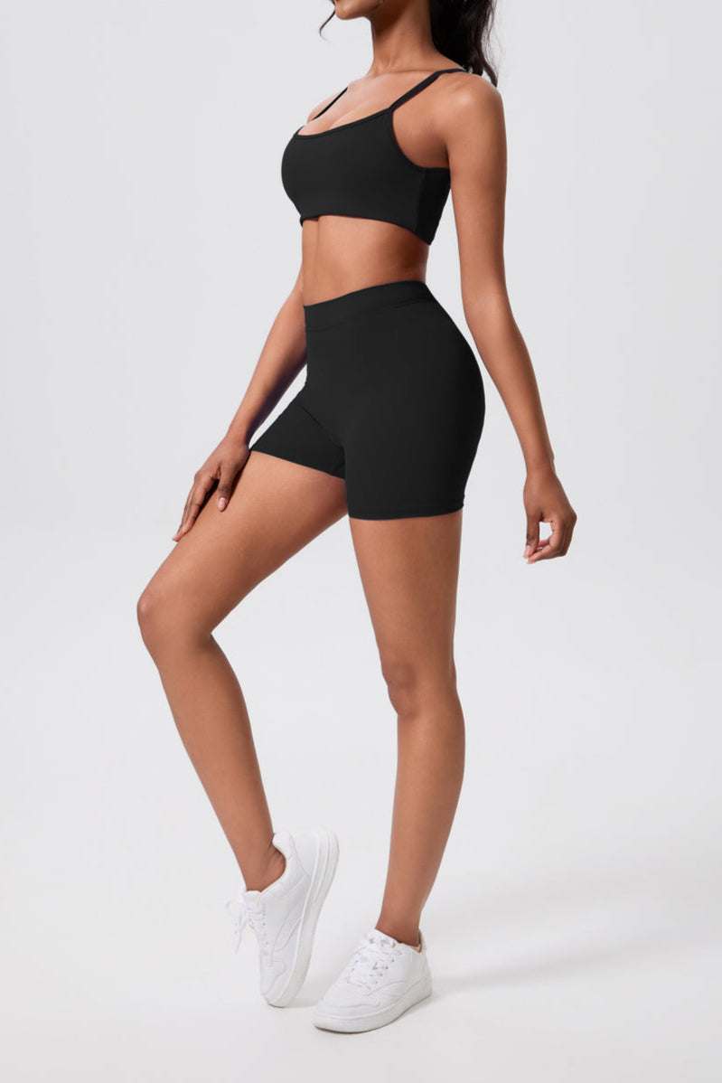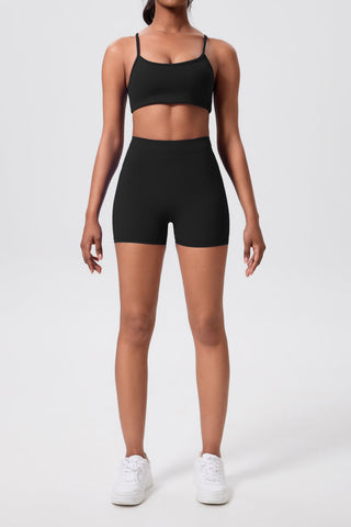 Unleash sleek confidence with the XO Ark Sports Bra & Shorts Set — a lightweight, streamlined duo designed to move seamlessly with you. Featuring a minimalist thin-strap bra with an open-back design and high-rise performance shorts, this set delivers sculpting support, breathable comfort, and effortless style for every workout.