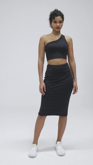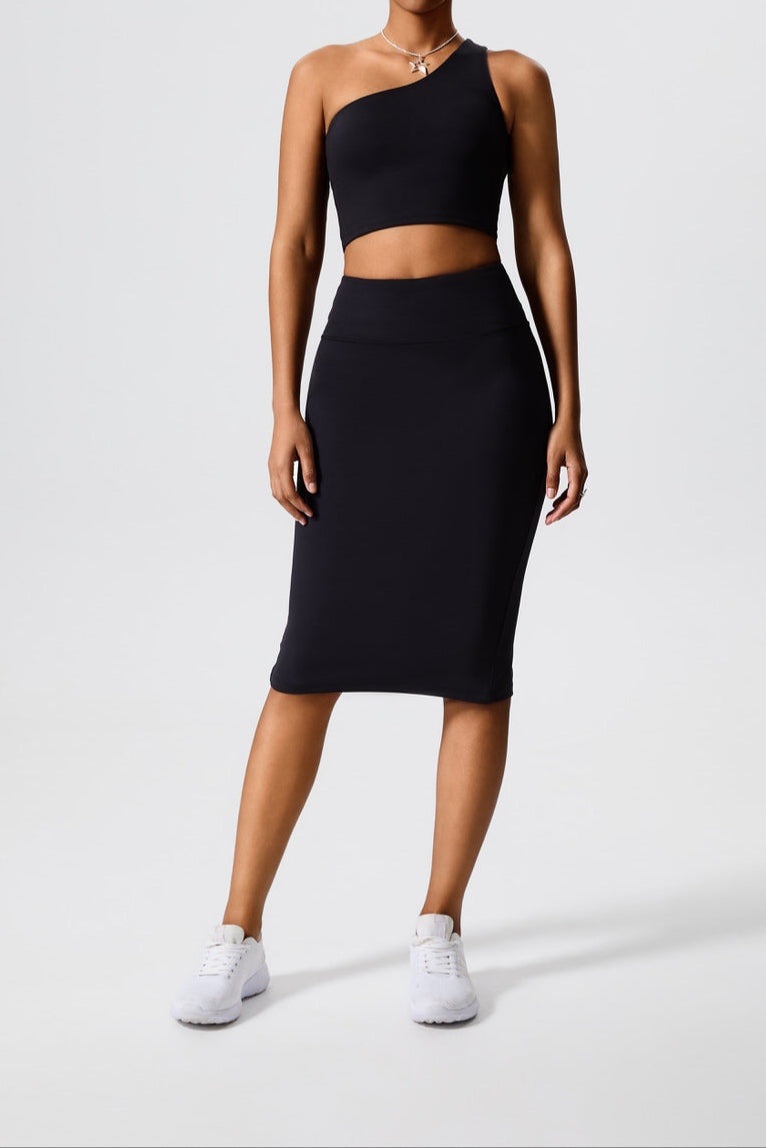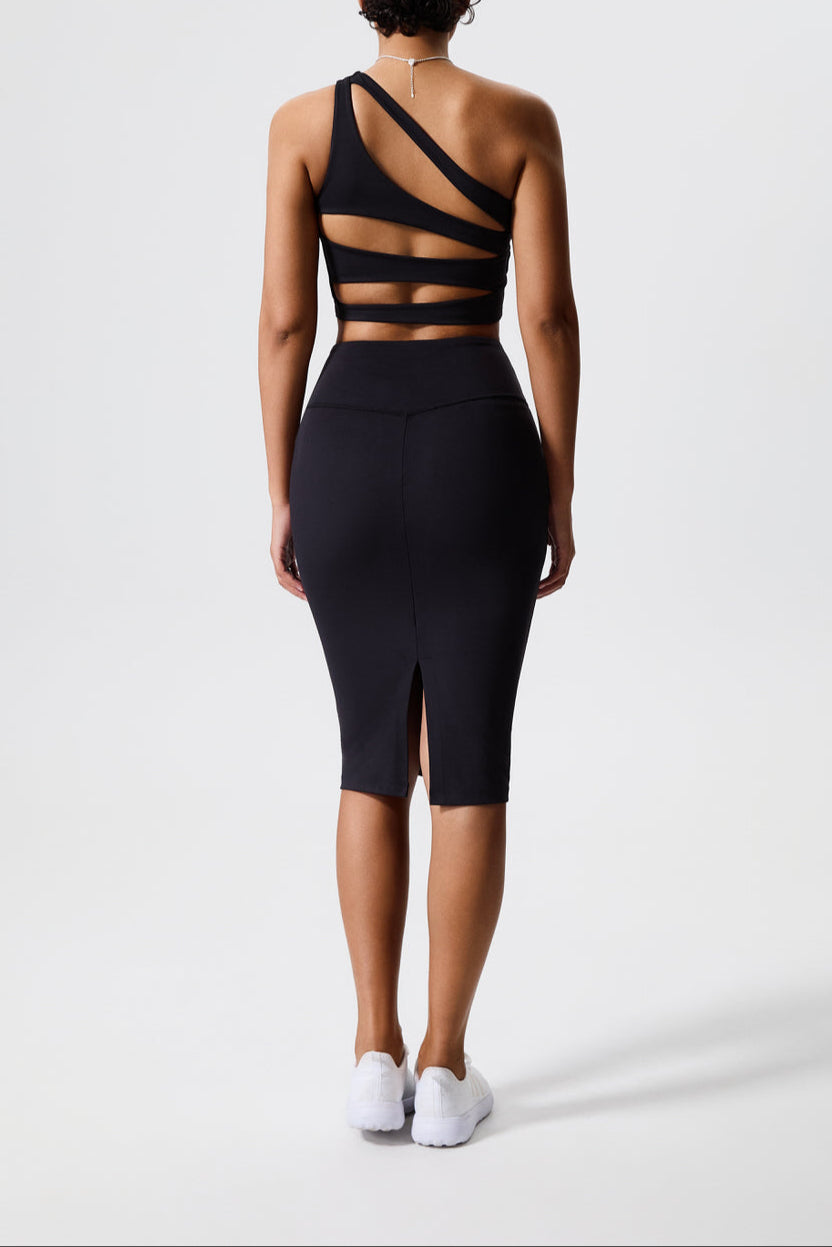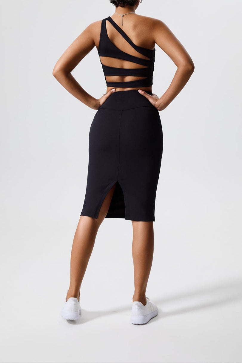 Step into sleek style with the XO Midi Back Slit Skirt – bold detail, sustainable fabric, and performance in motion.