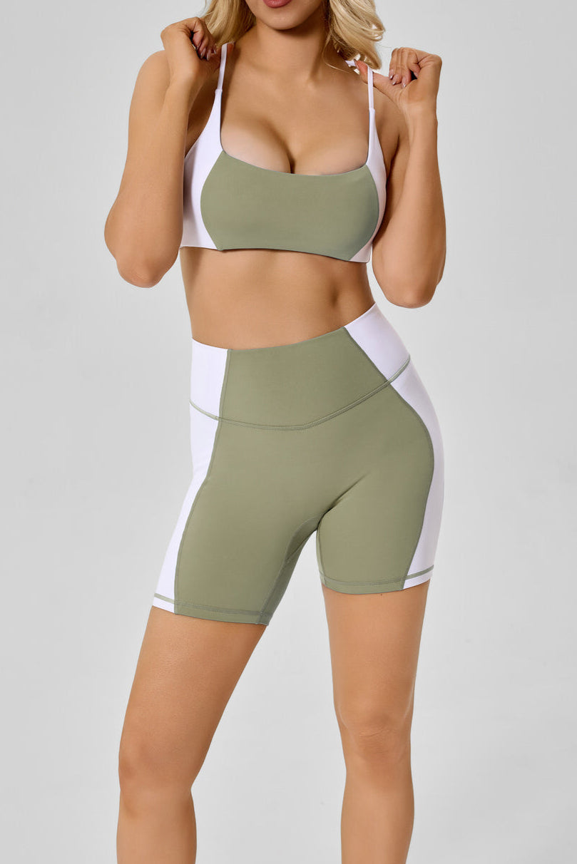 Color-Block Sports Bra: Sleek, minimal silhouette with supportive straps and a square neckline.