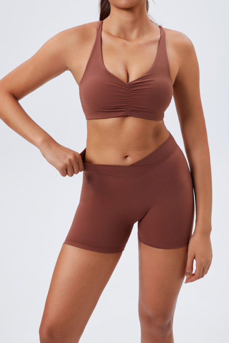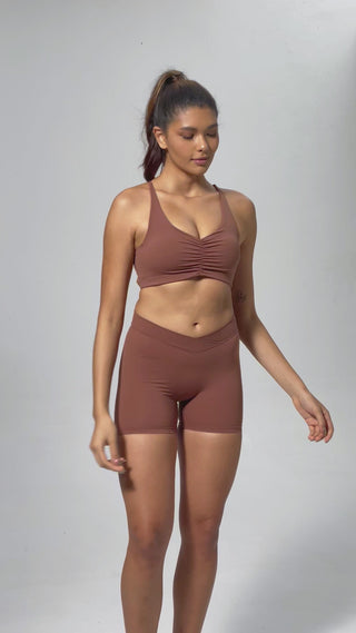 V-Neck Elegance: Stylish sports bra with striking strap detail for a confident silhouette.